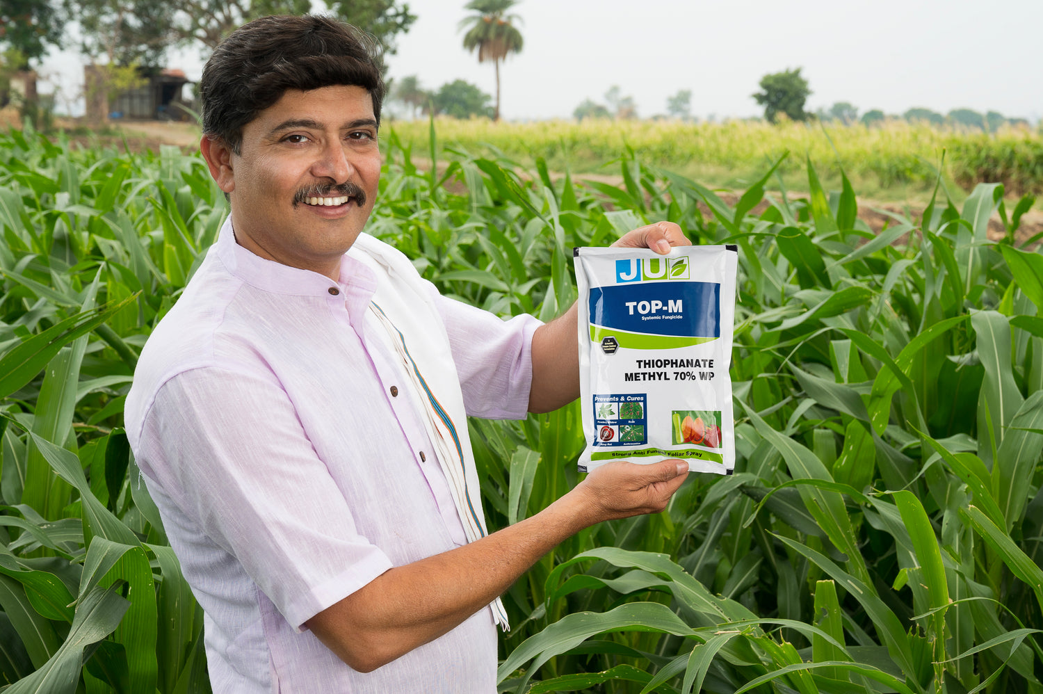 JU Top-M is a systemic fungicide formulated with Thiophanate Methyl 70% WP. It provides preventive and curative protection against a wide range of fungal diseases including powdery mildew, scab, rusts, blights, wilts, and rots across multiple crops. Its systemic action ensures long-lasting protection and improved crop health.