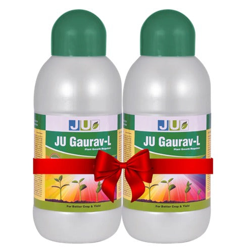 JU Gaurav-L is a refined plant growth regulator containing 0.001% Gibberellic acid, designed to boost the yield and enhance the quality of a variety of crops. This product facilitates vital growth processes in plants, particularly during the critical phases of flowering, boll formation, and fruit set, ensuring optimal development and productivity.
